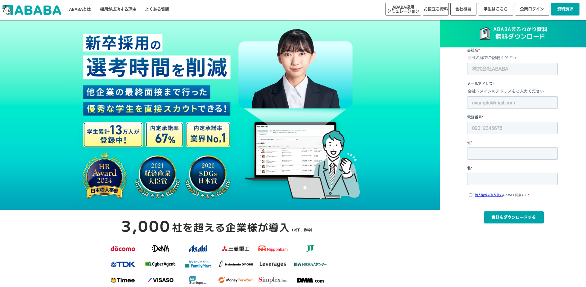 ABABAは、就活の過程を評価する新卒向けスカウトサービスです。他社の最終面接まで進んだ学生が登録しており、企業はそうした学生へアプローチできます。