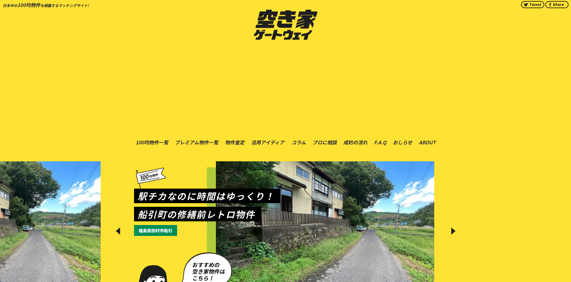 空き家ゲートウェイは、日本中の100均空き家物件を探せるサービスです。100円・100万円といった低価格帯の空き家を軸にしているため、再生前提で物件を探したい人に向いています。