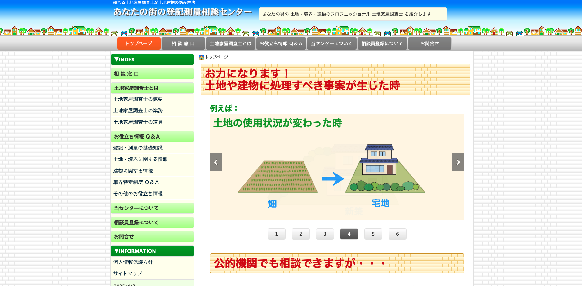 土地・建物の調査、測量、登記というテーマが明確なので、どの専門家に相談すべきか迷っている人にも使いやすいです。