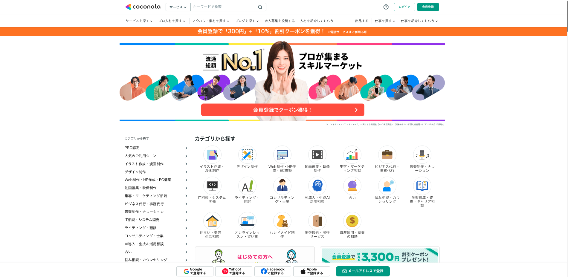| サービスURL | https://coconala.com/ |