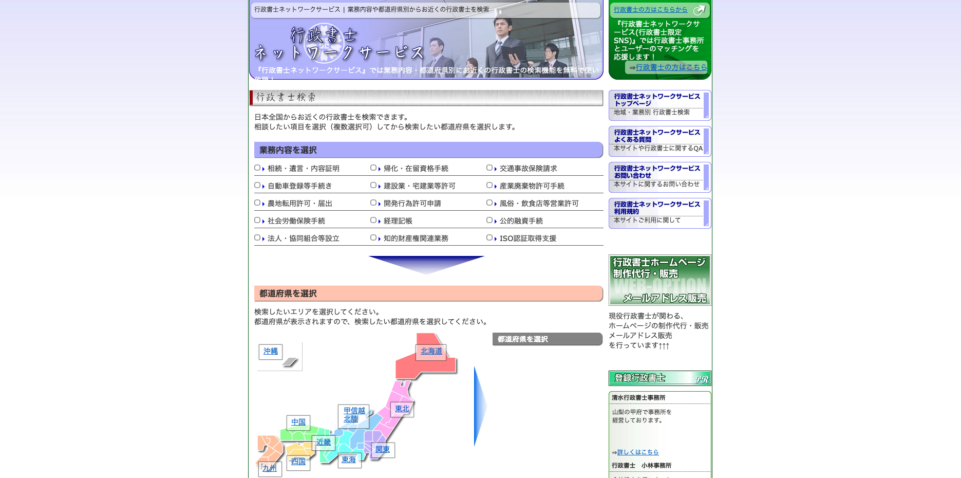 行政書士ネットワークサービス|地域と業務で探せる