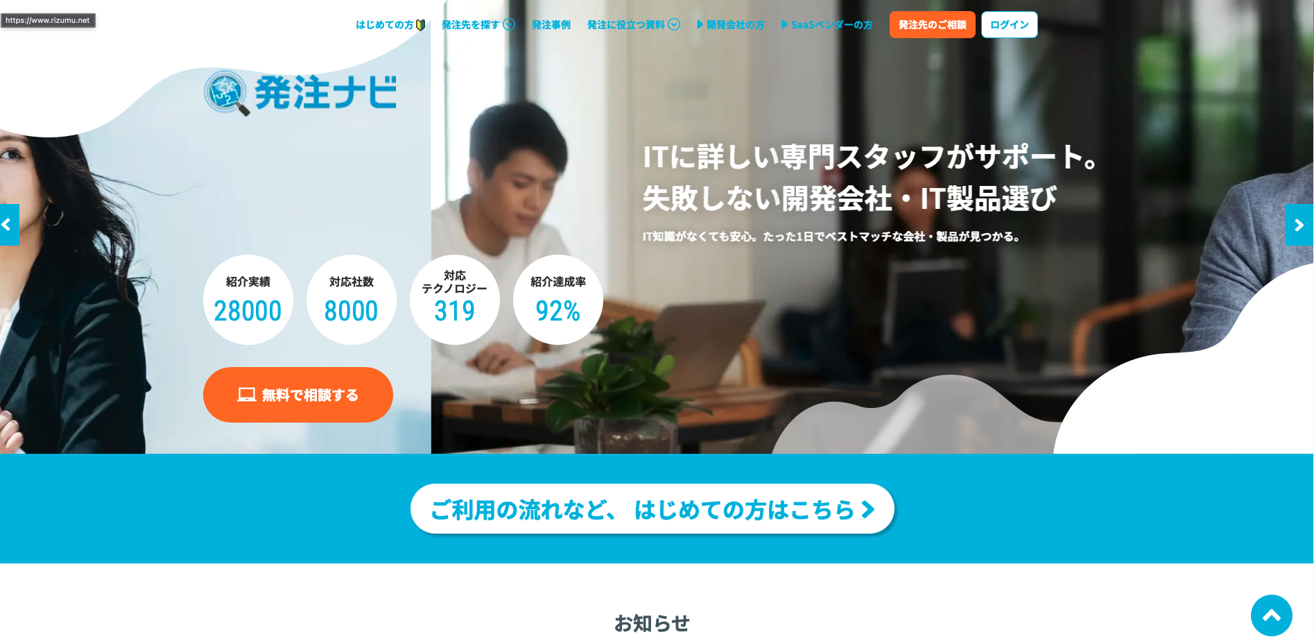 発注ナビは、IT案件を発注したい企業と、対応できる開発会社・Web制作会社・ITベンダーをつなぐサービスです。専門スタッフのヒアリングをもとに候補を絞り込みやすい構造になっています。