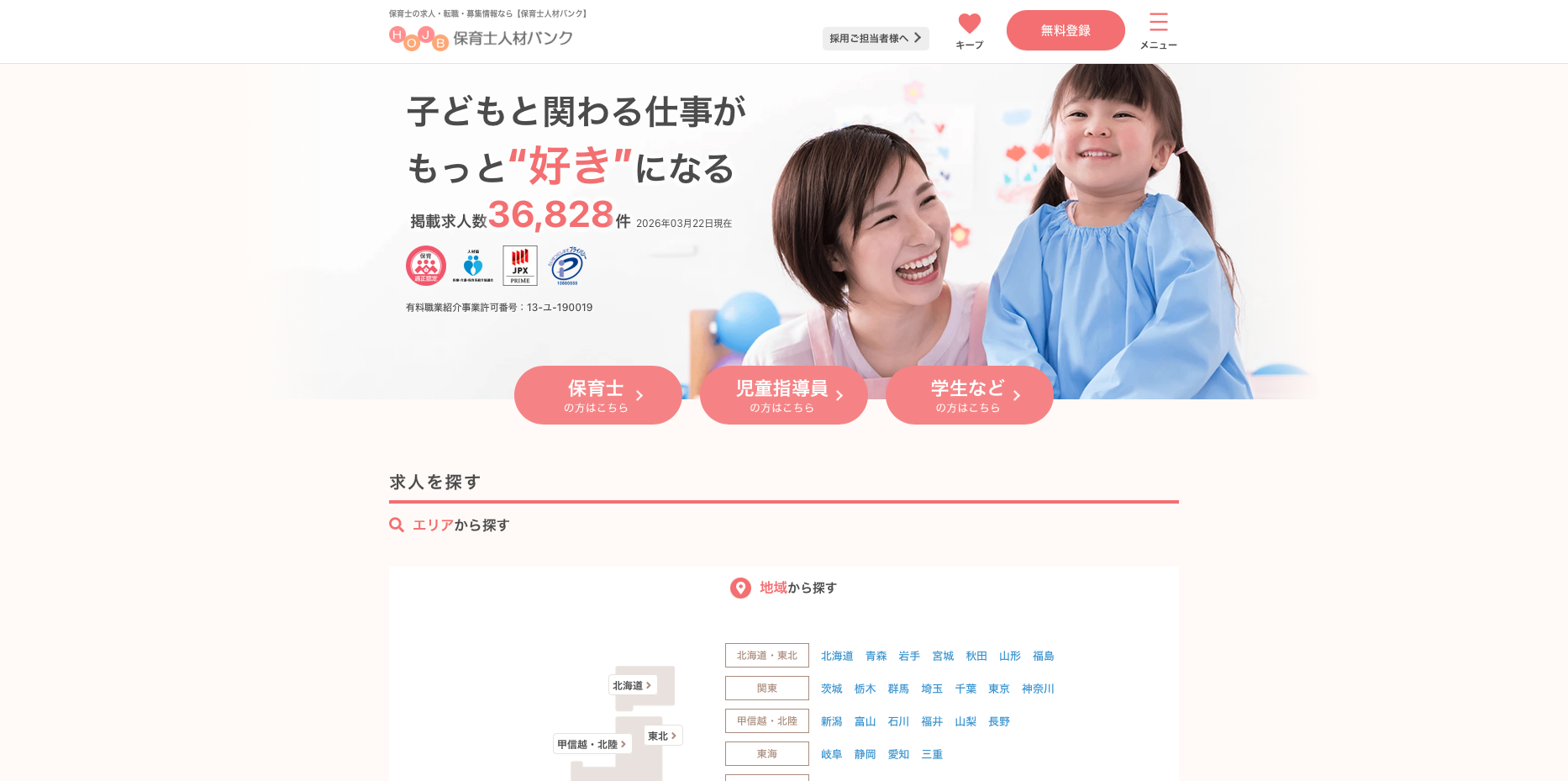 | 公開実績 | 約3万件以上の保育・療育求人、適正な有料職業紹介事業者認定 |