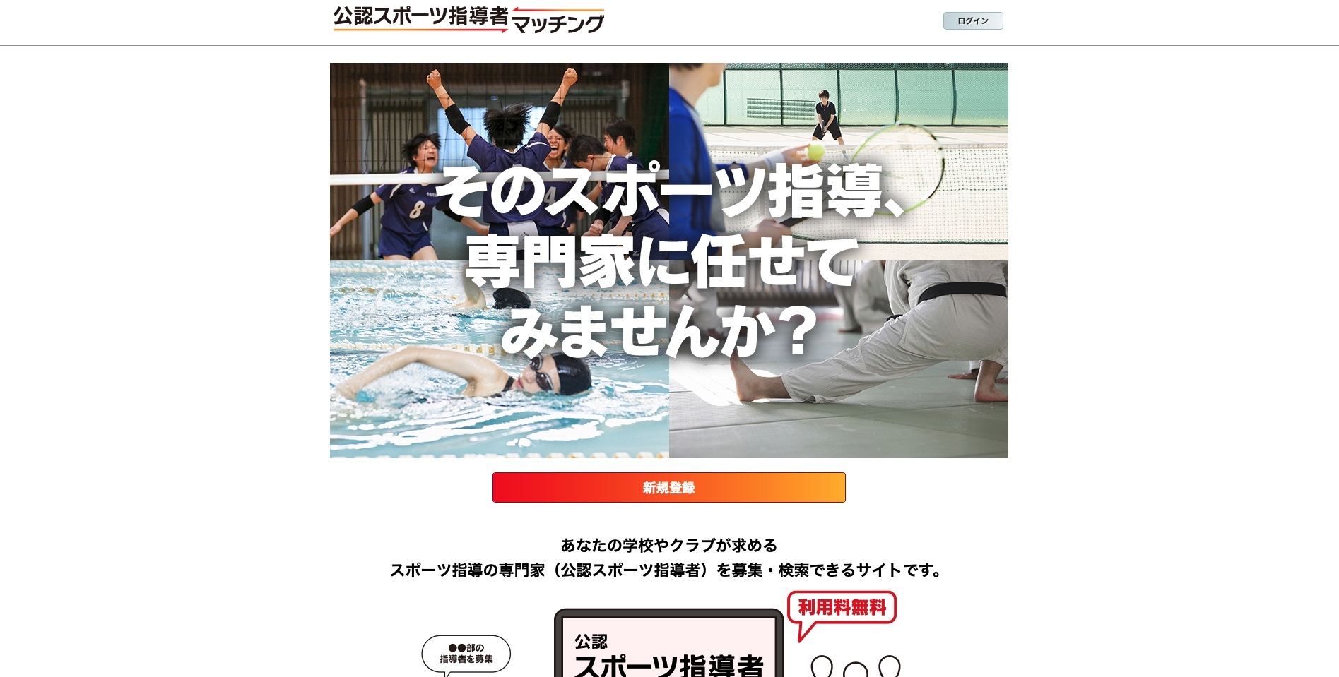 - 無料で募集・検索を始めたい教育委員会やスポーツ団体