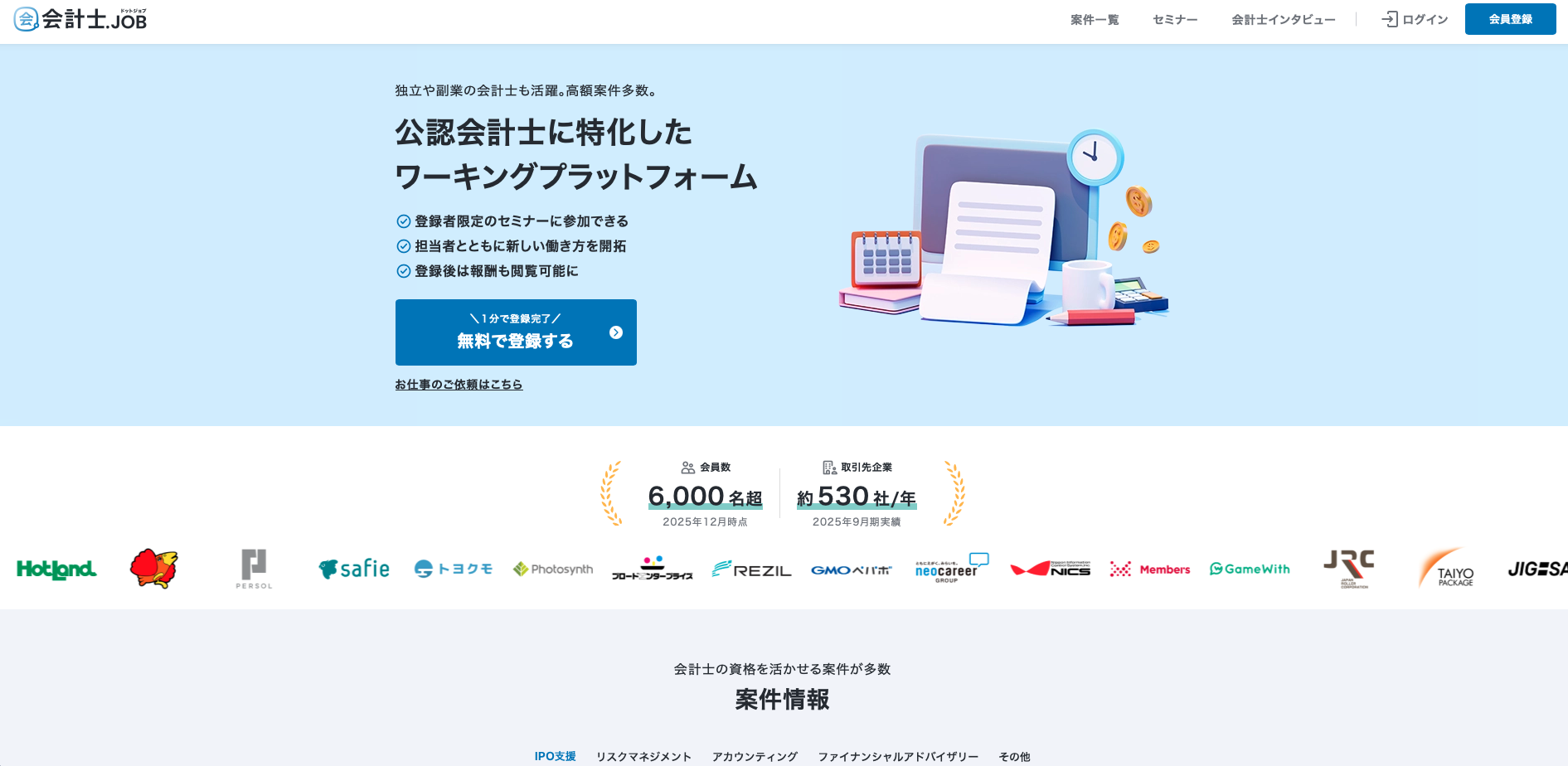 • 会計士向け案件ジャンルが整理されている