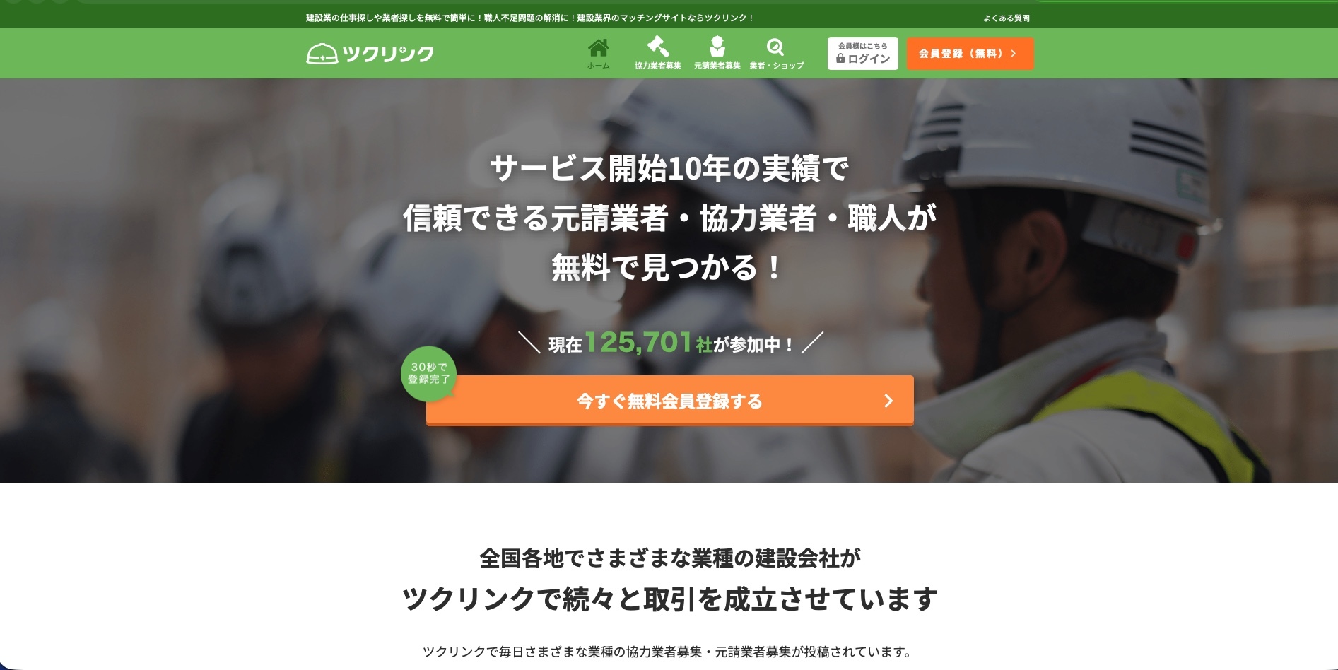 ツクリンクは、建設事業者同士の受発注をつなぐマッチングサービスです。電気工事会社にとっては、協力会社を探したい、新しい元請け先を開拓したい、案件の受注先を増やしたいという場面で使いやすい選択肢です。