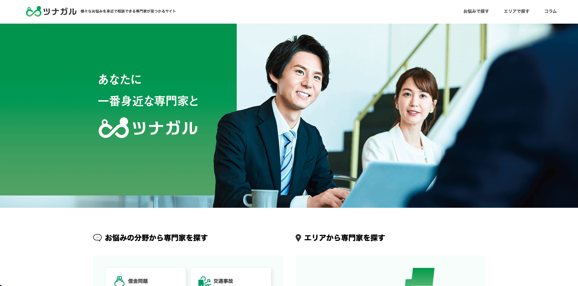 相続、登記、借金問題など、悩みから相談先を探したい人に向いています。総合型サービスより、法律・手続き系にしぼって探したい人と相性があります。